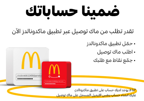 حدثنا تطبيقاتنا والآن تقدر تسجل دخولك في ماك توصيل بنفس حسابك بـتطبيق ماكدونالدز.